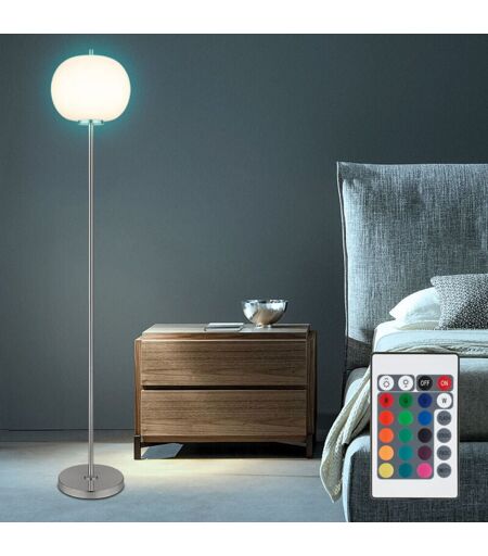 Globo Lighting - Lampadaire Abat-jour en verre opalin Lampe sur pied Télécommande dimmable Lampe de salon sur pied, métal nickel, rgb led 4W 470Lm