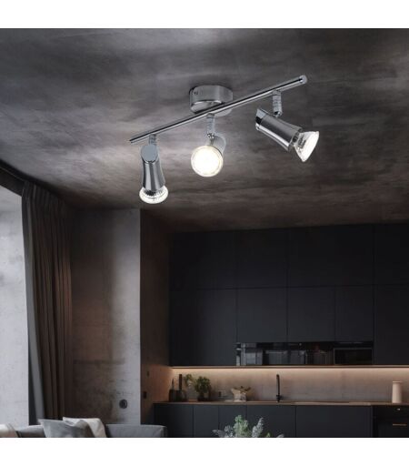 Globo Plafonnier spot bar plafonnier avec spots mobiles Spot de plafond à 3 lampes, métal chrome nickel mat, 3x led GU10 blanc chaud, LxH 39x11,5cm, salon