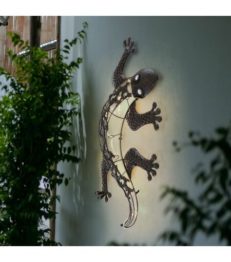 Globo Lampes murales solaires pour l'extérieur figurine de jardin d'animaux figurine de lumière solaire gecko pour montage mural, métal de couleur bronze,