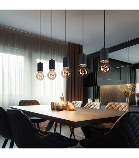 Globo Suspension salle à manger lampe suspendue 5 flammes bois noir réglable en hauteur, métal, 5x douille E27, LxPxH 115x10x120 cm