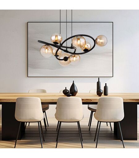 GLOBO LIGHTING Suspension 8 flammes led suspension lampe de table à manger lampe de salon rétro, noir, boules de verre ambré, 8x 3,5W 8x 350lm blanc chaud, DxH 65 x