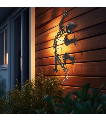 Globo Lampes murales solaires pour l'extérieur figurine de jardin d'animaux figurine de lumière solaire gecko pour montage mural, métal de couleur bronze,