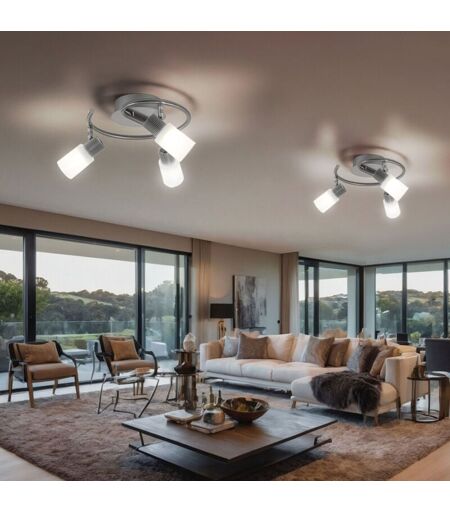 Globo Plafonnier led spot orientable rondell verre albâtre plafonnier salon, chrome nickel mat, 3x 5W 300Lm blanc chaud, DxH 28x14,5 cm, lot de 2