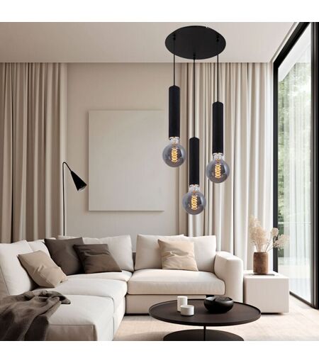 GLOBO LIGHTING Lampe suspendue lampe à suspension 3 flammes lampe de table à manger en bois lampe à suspension en grappe de salon, noir, 3x E27, DxH 35 x 160 cm