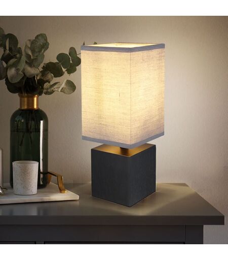 GLOBO LIGHTING Lampe de table de chevet Lampe d'appoint moderne Lampe à abat-jour noire, lampe de bureau cube en bois, textile anthracite, 1x douille E27, LxlxH