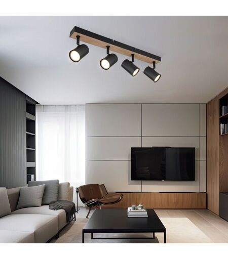 Globo Lighting - Plafonnier Plafonnier 4 flammes spot orientable aspect bois noir avec spots orientables, métal noir, 4x douilles GU10, LxlxH