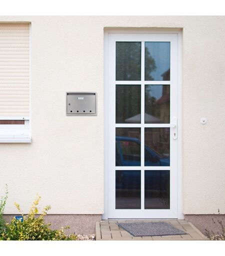 Une boîte aux lettres au format paysage est la boîte aux lettres argent Rottner Imola. Son corps est en tôle d'acier thermolaquée. La porte, qui peut être ouverte avec une serrure cylindrique, brille par de nombreux détails tels qu'une enveloppe en relief, une plaque signalétique et 4 fenêtres rondes. La boîte aux lettres se ferme avec un petit rabat pour protéger vos articles des intempéries. Le matériel de montage approprié et un gabarit de perçage sont inclus dans la livraison. ...