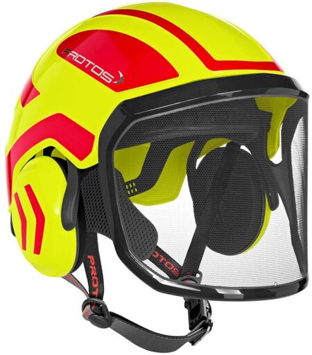 Protos - Casque forestier / casque de protection kox Integral Arborist F39 jaune fluo/rouge