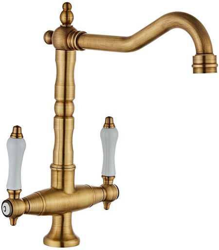 Cyslmuk - Robinet Mitigeur Cuisine Vintage Robinet de Lavabo Rétro 2 Poignées Réglable Chaude et Froide Rotatif 360° Bronze