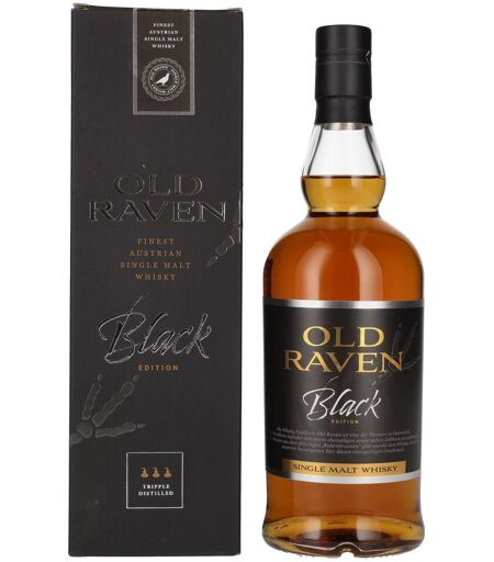Old Raven Whisky Old Raven Triple Distilled Single Malt Whisky Black Edition Fasstärke 54% Vol. 0,7l en boîte cadeau