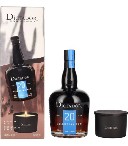 Rhum Dictador Dictador 20 Years Old ICON RESERVE Colombian Rum 40% Vol. 0,7l en boîte cadeau avec Kerze