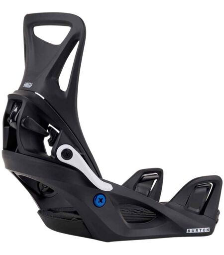 Burton propose son tout nouveau système de fixation de snowboard all mountain pour enfant, la Smalls Step On® Black, ayant les mêmes caractéristiques que le modele Step On® pour adulte.Rapidité et facilité de chaussage sont les premiers atouts de ces nouvelles fixations Step On® qui arborent un design similaire aux fixations classiques mais où les straps ont disparu pour laisser place à trois ergots. Ces ergots sont placés de chaque côté de la chaussure à l'avant du pied ainsi que sur la zone du tendon d'Achille. Placez votre pied dans l'embase et c'est fixé!Outre la rapidité, les performances proposées par les Smalls Step On® n'ont rien à envier aux fixations traditionnelles.Chaussées avec les Photon Step On®, vous pourrez vous engager dans un style plus freeride. Si vous optez pour les Ruler Step On®, alors vous aurez un combo parfait pour vous amuser en freestyle et sur piste.Les chaussures orientent le programme de la fixation. C'est pourquoi elle est proposée avec un flex médium et un amorti médium également pour une fixation très polyvalente.C'est une fixation très réactive qui colle littéralement le pied à l'embase et contre le spoiler. Lors d'une flexion latérale, aucun jeu ne vient parasiter votre progression. Avec la Step On®, la précision et la réactivité ne sont pas en option!La fixation Smalls Step On® est destinée aux mini snowboardeurs de niveau intermédiaire en pleine progression qui ne veulent plus perdre temps à chausser et qui veulent profiter au maximum de tout ce que la montagne peut leur offrir. ...