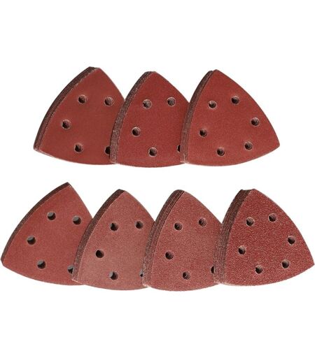?Alumina Abrasif Triangle?Forte résistance à l'eau et peut être utilisé dans des environnements humides et secs, l'adhésif nouvellement développé améliore la résistance à l'abrasion et la douceur des feuilles abrasives et a une efficacité de polissage élevée, une bonne finition et une longue durée de vie ?Taille?90 x 90 x 90 mm, avec 6 trous pour l'extraction de la poussière - empêcher les obstructions ?Support?Triangles abrasifs autoagrippants, faciles et rapides à coller-robustes-durables et pratiques, Good Choice pour ponçage et polissage ?70 pièces Papier Abrasif Mixpack?Chaque paquet contient 70 pièces ponceuse triangulaire,7 grades de grossier à fin,10 x Grain 60/80/120/180/240/320/400 Chacun,satisfont presque toutes vos exigences générales de polissage ?Large application?Convient pour le meulage-polissage et le dérouillage du métal et du non-métal-cuir-bois-plastique-pierre-caoutchouc-verre et autres matériaux, etc., tampons de ponçage multi-outils-papier abrasif triangulaire ...