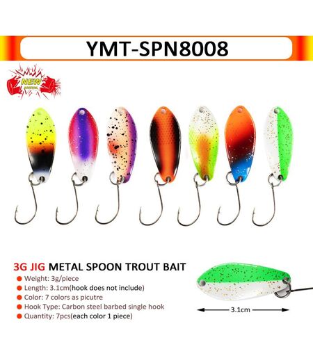 Lot D'appâts Métalliques Pour La Pêche À La Truite,Set De Leurres Pour Attraper Des Poissons,Matériel Pour Pêcher Des Truites,Matériel Pour Pêcher Des Poissons,Matériel Pour - Type Ymt-Spn8008-7pcs