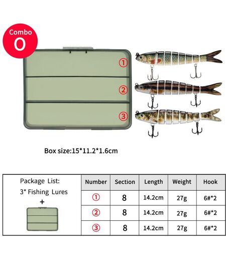 14.2cm,27g Leurre Ensemble Brochet Coulant De Type Poisson Nageur,Appât Élidéal Pour La Pêche Au Brochet,Wobjeff,Crankbait,Appâts De Pêch,Leurres De Pêche Mer Bar,Leurre Trous - Type 14cm 27g Set O