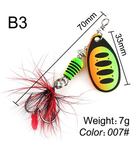 Cuillère De Pêche Super 7g/8g/9g/11g/15g/17.5g,Appâts Avec Monofilament En Laiton,Crochet Pointu,Plumes,Lames Ovales En Feuille De Saule - Type [B3]-007