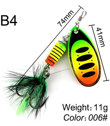 Cuillère De Pêche Super 7g/8g/9g/11g/15g/17.5g,Appâts Avec Monofilament En Laiton,Crochet Pointu,Plumes,Lames Ovales En Feuille De Saule - Type [B4]-006
