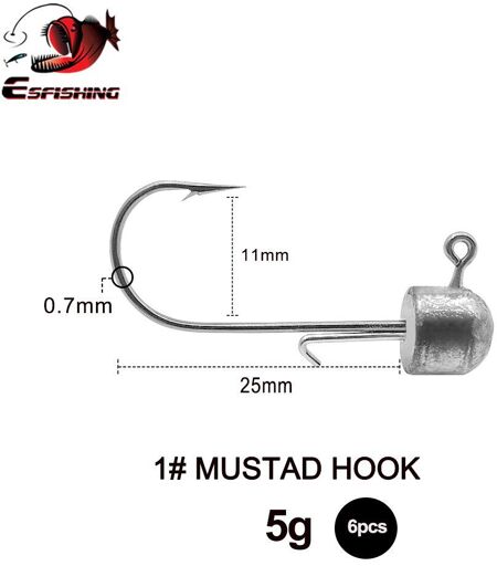 Esfishing-Hameçon Mustad Pour Pêche Au Leurre Souple,Tête De Gabarit,1.5g,2g,3g,5g,6g,10g,14g,18g - Type 5g