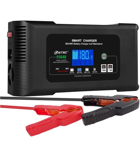 HTRC-Chargeur de batterie de chariot de golf 36V/18A 48V/13A pour voiture de club EZ-GO RXV TXT Yamaha AGM veFePO4 PB réparation de batterie au lithium-acide - Type With Clip-EU