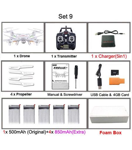 D'origine Syma X5c/X5c-1 Explorateurs Drone 2.4g 4ch 6 Axes Gyro Rc Quadcopter Avec 2.0mp Hd Cam¿¿Ra Rtf H¿¿Licopt¿¿Re Rc Pour Enfants Jouets - Type Set9