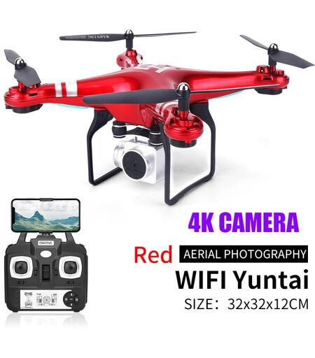 Drone Rc Avec Cam¿¿Ra Hd 4k Wifi",Vid¿¿O En Temps R¿¿El,Sauna D'altitude,Moins Une Touche De Retour,Quadrirotor Fpv,"Jouets H¿¿Licopt¿¿Re T¿¿L¿¿Command¿¿S - Type Red 4k Camera