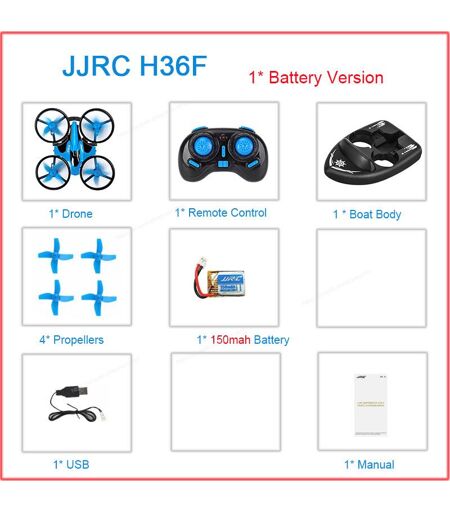 Jjrc H36f Rc Mini Drone 3in1 Terzetto Bateau Voiture Eau Sol Mode Air Mode Maintien D'altitude T¿ºtes Mode Rc H¿¿Licotpte Pour Enfants Cadeau - Type [1]-150mah Battery
