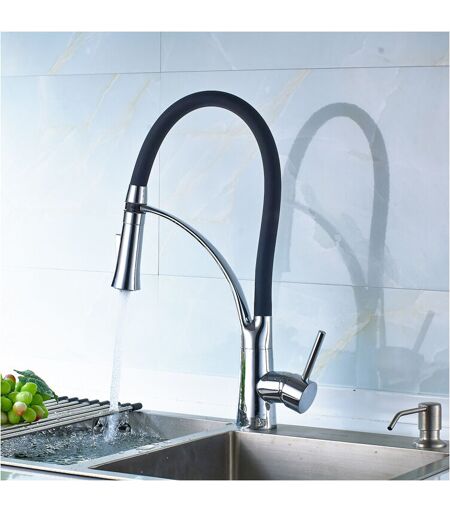 SIFREE Robinet Cuisine Mitigeur avec Douchette Extractible en Silicone Noir Rabattable 360° Mitigeur pour Evier Chromé à Bras Rotat - Froid
