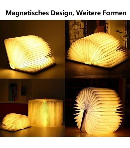 ZQYRLAR Lampe de livre pliante en bois, lampes de livre à LED magnétiques, lumières décoratives / veilleuse, lampe de bureau rechargeable USB, cadeau idéal