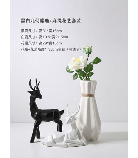 Creative Tv Cabinet Décoration Ornements Lumiere Luxe Haut De Gamme Simple Moderne Maison Salon Artisanat Décoration-Nordique Cerf Noir Et Blanc + Chanvre Corde Origami Vase [Recommandé]