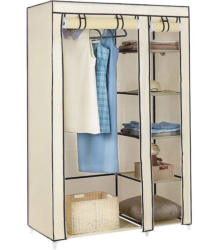 Description : 1.Large gamme d'applications - grande capacité montage et démontage faciles gain de place très bel aspect bel espace très bon produit supplémentaire adapté à votre pièce salon balcon débarras ou garage 2.Cadre métallique robuste - La structure métallique est antirouille très solide et stable. Chaque mur supporte même des charges allant jusqu'à 5 kg. La charge maximale de la flèche est de 25 kg pour mieux répondre à vos besoins 3.Tissu non tissé - respirant résistant à l'humidité flexible léger non toxique sans odeur. 4.Portes à rideaux - Les portes à rideaux facilitent l'ouverture et la fermeture des portes et la poussière pour protéger vos biens. Avec velcro et fermeture à glissière de sorte que la porte ne tombe pas. Couture et fermeture à glissière renforcée pour plus de résistance à l'usure 5.Pièces en plastique robustes - de bonne qualité durables robustes et sans odeur résistantes à la chaleur faciles à assembler 6.Taille:110*45*175cm 7.Couleur:Beige ...