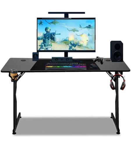 TUBIAZ TolleTour Bureau Gaming 140 x 60cm Grande Bureau Gamer avec Un Plateau en Fibre de Carbone, Bureau Informatique Ergonomique avec Tapis de Souris,
