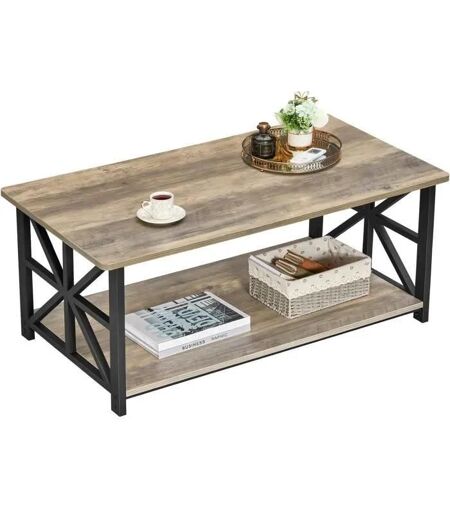 Greenforest Table Basse D'angle Ronde, 100 Cm Table Centrale Design Avec Étagère À 2 Niveaux X-Frame Design Pour Le Salon Home O15