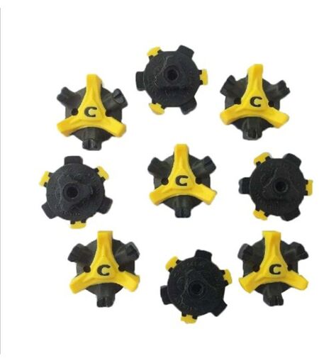 100% tout neuf.Couleur: noir et jauneMatériau: TPR.Taille: 2.7cm x 2.7cm x 1.2cm - 1.06 pouces x 1.06 pouces x 0.47 pouces.Quantité: 14 piècesInclus dans l'emballage: 14 x pointes de chaussures de GolfCaractéristiques:La conception écologique minimise les marques sur le vert.Trous de clé formés en matériau rigide.L'indicateur d'usure visible «C» devient solide lorsque les pointes doivent être remplacées.Les éléments de traction à ressort primaire offrent une capacité de préhension optimale.La construction à double dureté aide à offrir au golfeur traction, stabilité et confort. ...