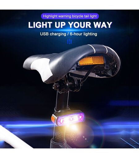 4-Gear LED Bike Taillight USB Charging High Brightness Bicycle Rear Lights Outdoor Cycling Tail Lights Night Ridding Safety Warning Lamp Cycling AccessoriesFeature: USB charging, direct charging convenience, fast charging 3 hours, lighting 2-8 hours strong power-saving design, charging to save energy.High-quality rubber snap design, convenient and solid installation, removable, easy to ride.Four lighting modes: red and blue bright light, red and blue flash, red and blue burst flash, red and blue flash.Rubber open light, four adjustable, long press the switch to open, press to change gears, a variety of gear changes, long press to close.Anti-dust and anti-slip plug design, to protect the USB charging port.Specification: Name: Bicycle Colorful Tail LightGear: 4 GearsWeight: About 64gSize: 7 * 2.5cmLight Beads: LED Light BeadsPower Supply: 6 Hours of Continuous Battery LifeCharging Method: USB ChargingNote:1. Due to the different monitor and light effect, the actual color of the item might be slightly different from the color showed on the pictures. Thank you!2. Please allow 1-2cm measuring deviation due to manual measurement.1 X Bike Colorful Taillight1 X USB Cable ...