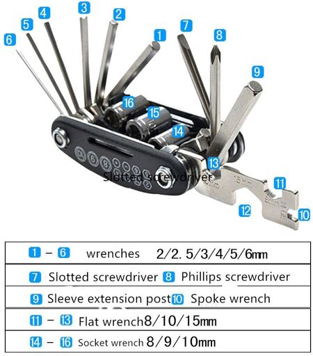 Hexagone Intérieur 16 En 1 Pour Vélo De Route, Bicyclette De Montagne, Combinaison De Cyclisme, Kits D'outils De Réparation, Vélo Pliant, Accessoires
