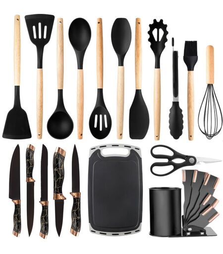 QIYAO Ustensiles de Cuisine Set de 20, Silicone antiadhésif Accessoires de Cuisine, Ensemble complet d'ustensiles de cuisine résistants aux rayures et à la