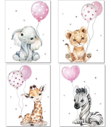 Affiche pour chambre d'enfant, créée par l'artiste. Motif charmant et mignon : améliorez le charme de votre pièce. Le cadeau parfait pour une baby shower, une naissance, une baby shower ou un baptême. De belles illustrations parfaites pour la chambre de votre enfant ou de votre bébé. Impression haute qualité sur papier satiné premium 300 g/m² - Lot de 4 affiches (cadre non inclus). Taille idéale pour le format de cadre traditionnel. L’impression d’art est livrée dans un emballage robuste. Ils ont fière allure, qu'ils soient cloués au mur ou encadrés. ...