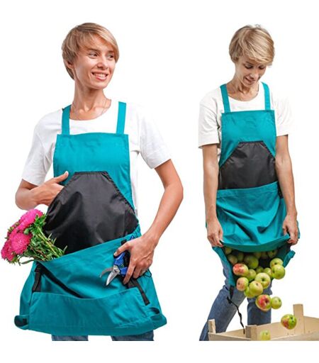 LINGHHANG Tablier de récolte (bleu), sac en toile pour la cueillette des fruits - Tablier de récolte ajustable et de grande capacité avec ouverture inférieure
