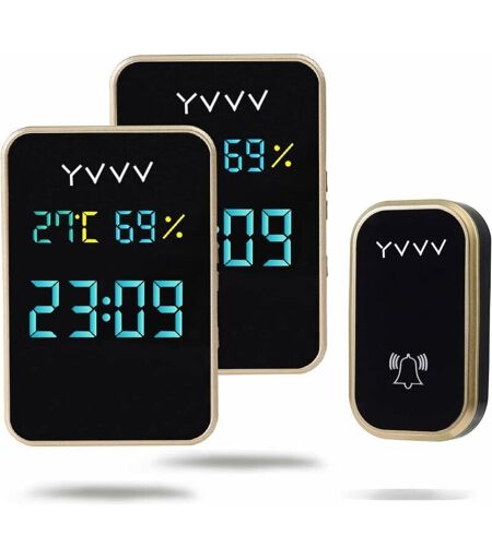 Sonette sans Fil, Carillons Étanche sans piles, Sonnette équipée d'un capteur de température et d'humidité, temps d'affichage, Kit de 1 Carillon