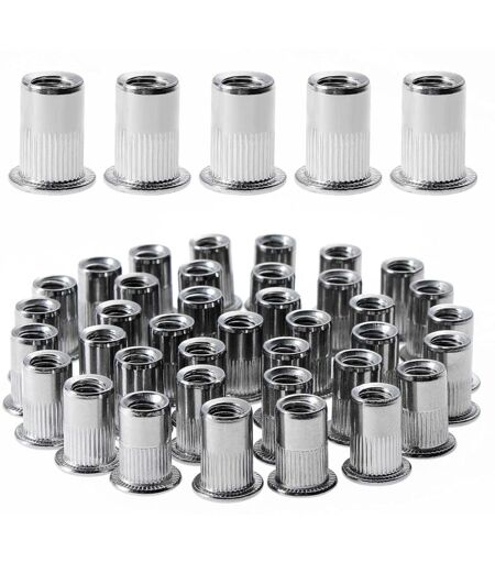 GROOFOO 100 pièces M6 écrou à rivet fileté à tête plate,écrous à riveter fileter en acier inoxydable,assortiment inserts filetés pour mental plastique (12 mm