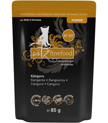 catz finefood Purrrr - est une nourriture humide monoprotéine de qualité supérieure pour chats sensibles à la nutrition ou souffrant d'intolérances par des experts en nutrition et des vétérinairesPour les chats sensibles sans céréales, sans sucre et une seule source de protéines animales, notre nourriture est particulièrement adaptée aux personnes allergiques et aux chats sensibles, également comme aliment completContenu purrr n° 107 kangourou bien toléré (70 %), bouillon de cuisson de kangourou (28, 8 %), minéraux et huile de bourrache ¿ sans conservateurs, exhausteur de goût ou colorantsIngrédients la liste est courte, car en plus de la viande et des abats, notre nourriture humide hypoallergénique ne contient que du bouillon de cuisson, des minéraux et de l'huile de haute qualité. Cela le rend particulièrement digestibleExtra de viande les chats sont carnivores et ont besoin de protéines animales, c'est pourquoi notre nourriture humide Gourmet pour chat avec une teneur en viande extra élevée est composée de viande et d'abats de qualité alimentaire.La livraison depuis la France est prévue dans 5 jours ouvrés, n'hésitez pas à passer votre commande ...