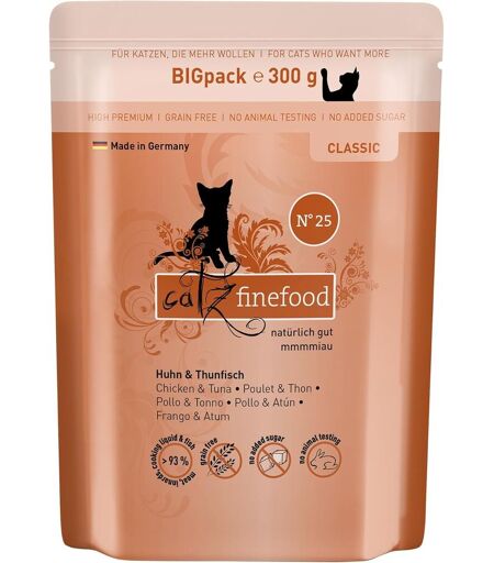 catz finefood La nourriture pour chat n° 5 contient beaucoup de poulet délicat (50 %), de thon (20 %) et d'ingrédients nutritifs tels que la citrouille et l'églantier. Garanti sans céréales, sucre, conservateurs et colorantscatz finefood Développé par des experts en nutrition et des vétérinaires notre nourriture humide est un aliment complet adapté aux besoins de votre chat avec un mélange optimal de nutriments et de vitaminesExtra de viande les chats sont carnivores et ont besoin de protéines animales, c'est pourquoi notre nourriture humide Gourmet avec une teneur en viande supplémentaire est composée de viande et d'abats de qualité alimentaire de qualité supérieureAdapté aux espèces pour le bien-être des animaux, nous renonçons délibérément à des ingrédients de mauvaise qualité (farine d'os, viande moulée, soja, céréales), d'additifs artificiels (attractifs, arômes, sucre) et du génie génétiqueContenu de la livraison vous recevrez 6 de nos sachets Big pack de 300 g. Notre nouveau sac de taille pour les chats qui en veulent plus.La livraison depuis la France est prévue dans 5 jours ouvrés, n'hésitez pas à passer votre commande ...