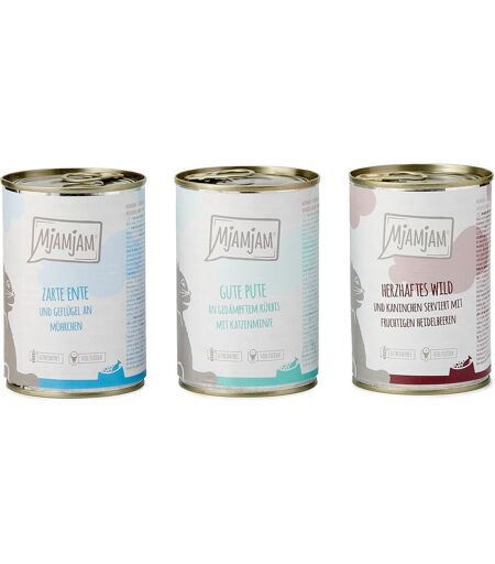 Alimentation humide pour chat - Pourcentage de viande très élevé - Vitamines et minéraux essentiels - Sans céréalesPour nos repas, nous utilisons principalement des ingrédients issus des fermes de la régionMjAMjAM - Tout simplement parce que c'est bonNous y renonçons céréales ni gluten, sucre, conservateur artificiel, lactoseNotre forfait mélange comprend une sélection des variétés les plus savoureuses, parfaites pour essayer ou pour les amis à quatre pattes qui aiment la variété.La livraison depuis la France est prévue dans 5 jours ouvrés, n'hésitez pas à passer votre commande ...