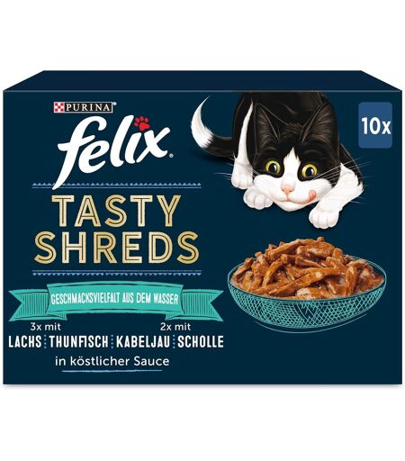 Nuem-Tasty Shreds Lot De 6 Boîtes De Nourriture Humide En Sauce Pour Chat-Variété De Goût Provenant De L'eau-6 X 10 X 80 G