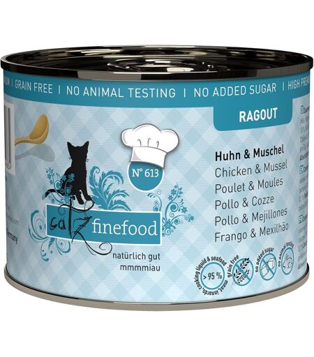 catz finefood - Développé par des experts en nutrition et des vétérinaires notre nourriture humide est un aliment complet avec un mélange optimal de nutriments et de vitamines, adapté aux besoins de votre chatRagout en sauce la nourriture humide pour chat composée de morceaux de viande tendres et naturels dans la sauce gourmet sent et a le goût fraîchement cuits et favorise la santé de la peau et du pelage de votre chatHypoallergénique la nourriture humide pour chat est hypoallergénique, sans céréales, sans gluten et sans sucre. Il est donc compatible avec les chatons sensibles, les chats juniors ou seniors ayant des voies urinaires sensiblesContenu de la livraison 6 x nourriture pour chat catz finefood Ragout dans une boîte de 190 g est idéale pour les petits groupes de chats ¿ une boîte par repas. Ainsi, le produit reste toujours frais, de manière optimale en consistance et en odeurAmour des chats depuis 20 ans, notre c?ur bat chez catz finefood (fabriqué par Pets Nature, en Allemagne) pour chiens et chats. Nous vous offrons la meilleure qualité et un service client compétent.La livraison depuis la France est prévue dans 5 jours ouvrés, n'hésitez pas à passer votre commande ...