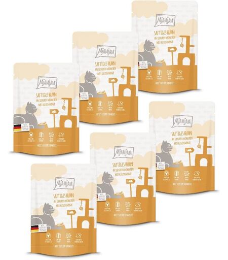 Nourriture naturelle pour chats sans céréales avec une teneur en viande très élevée - monoprotéineLes aliments complets de MjAMjAM offrent une nutrition pour chat adaptée à l'espèce, naturelle et proche de la proie. Notre fournisseur le plus important, la nature, nous fournit tous les ingrédients importants pour répondre à notre philosophie et aux besoins de votre animal de compagnie.Pour nos repas, nous utilisons principalement des ingrédients provenant de fermes régionales. Élevés ou cultivés avec beaucoup d'amour, ils sont soumis aux contrôles de qualité les plus stricts. Nous n'utilisons que des ingrédients 100% de qualité alimentaire.Le bien-être animal est notre priorité absolue. Pour cette raison, nous évitons délibérément les colorants et attractifs, le sucre, le gluten, les céréales et le soja, les sous-produits végétaux et les conservateurs de synthèse.Composition viande de poulet, foie, c?urs (72,5 %), bouillon de viande (22,4 %), carottes (4 %), minéraux (1 %), herbe à chat (0,1 %).La livraison depuis la France est prévue dans 5 jours ouvrés, n'hésitez pas à passer votre commande ...
