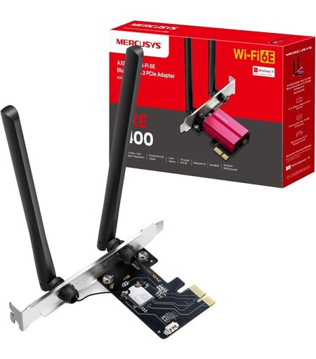 Vitesse tri-bande imparable vitesses jusqu'à 2402 Mbps (6 GHz) + 2402 Mbps (5 GHz) + 574 Mbps (2,4 GHz) Norme WiFi 6E Étendez vers une bande plus claire et plus large de 6 GHz Couverture de signal plus large Deux antennes haute performance Bluetooth 5.3 la dernière technologie Bluetooth atteint des vitesses plus rapides et une couverture plus large Sécurité améliorée la dernière amélioration de la sécurité, WPA3, offre une protection améliorée en sécurité des mots de passe personnels Rétrocompatibilité Pr en charge complète des normes 802.11ax/ac/a/b/g/n Compatible avec Windows système d'exploitation pris en charge Windows 10, 11 (64 bits) et actuellement bande 6 GHz uniquement pris en charge sur Windows 11 Les produits internationaux ont des conditions de vente distinctes, sont vendus depuis l'étranger et peuvent différer des produits locaux, y compris la taille, la classe d'âge, et la langue du produit, de l'étiquetage ou des notices. En savoir plus sur Global Store..La livraison depuis la France est prévue dans 5 jours ouvrés, n'hésitez pas à passer votre commande ...
