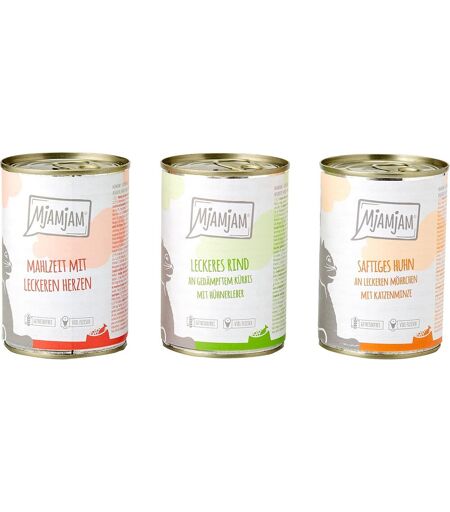 Alimentation humide pour chat - Pourcentage de viande très élevé - Vitamines et minéraux essentiels - Sans céréalesPour nos repas, nous utilisons principalement des ingrédients issus des fermes de la régionMjAMjAM - Tout simplement parce que c'est bonNous y renonçons céréales ni gluten, sucre, conservateur artificiel, lactose.La livraison depuis la France est prévue dans 5 jours ouvrés, n'hésitez pas à passer votre commande ...