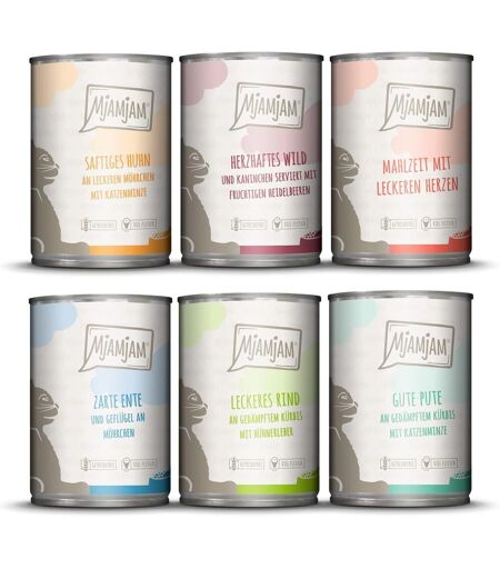Alimentation humide pour chat - Pourcentage de viande très élevé - Vitamines et minéraux essentiels - Sans céréalesPour nos repas, nous utilisons principalement des ingrédients issus des fermes de la régionMjAMjAM - Tout simplement parce que c'est bonNous y renonçons céréales ni gluten, sucre, conservateur artificiel, lactoseNotre forfait mélange comprend une sélection des variétés les plus savoureuses, parfaites pour essayer ou pour les amis à quatre pattes qui aiment la variété.La livraison depuis la France est prévue dans 5 jours ouvrés, n'hésitez pas à passer votre commande ...