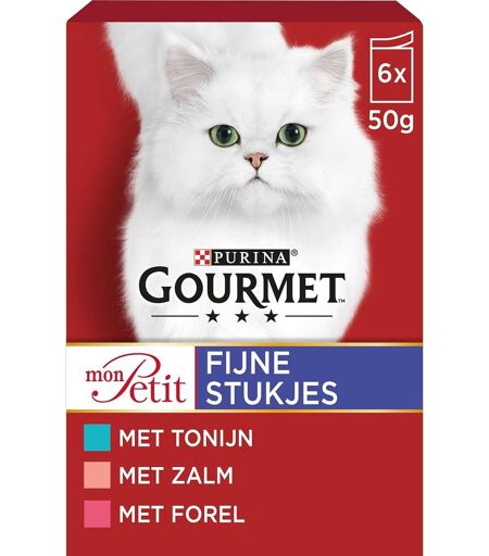Nuem-Mon Petit Intense Fish Selection Nourriture Pour Chat, Nourriture Humide Au Thon, Saumon Ou Truite En Sauce-6x50g-Boîte De 4 (24 Sachets Portions ; 1,2kg)